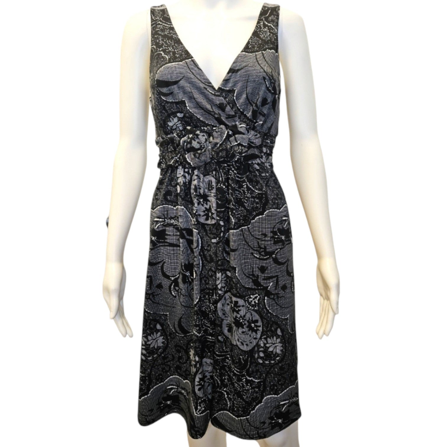 New York & Company Black & Grey Floral Midi Dress - Size XS | Casual Summer V-Neck