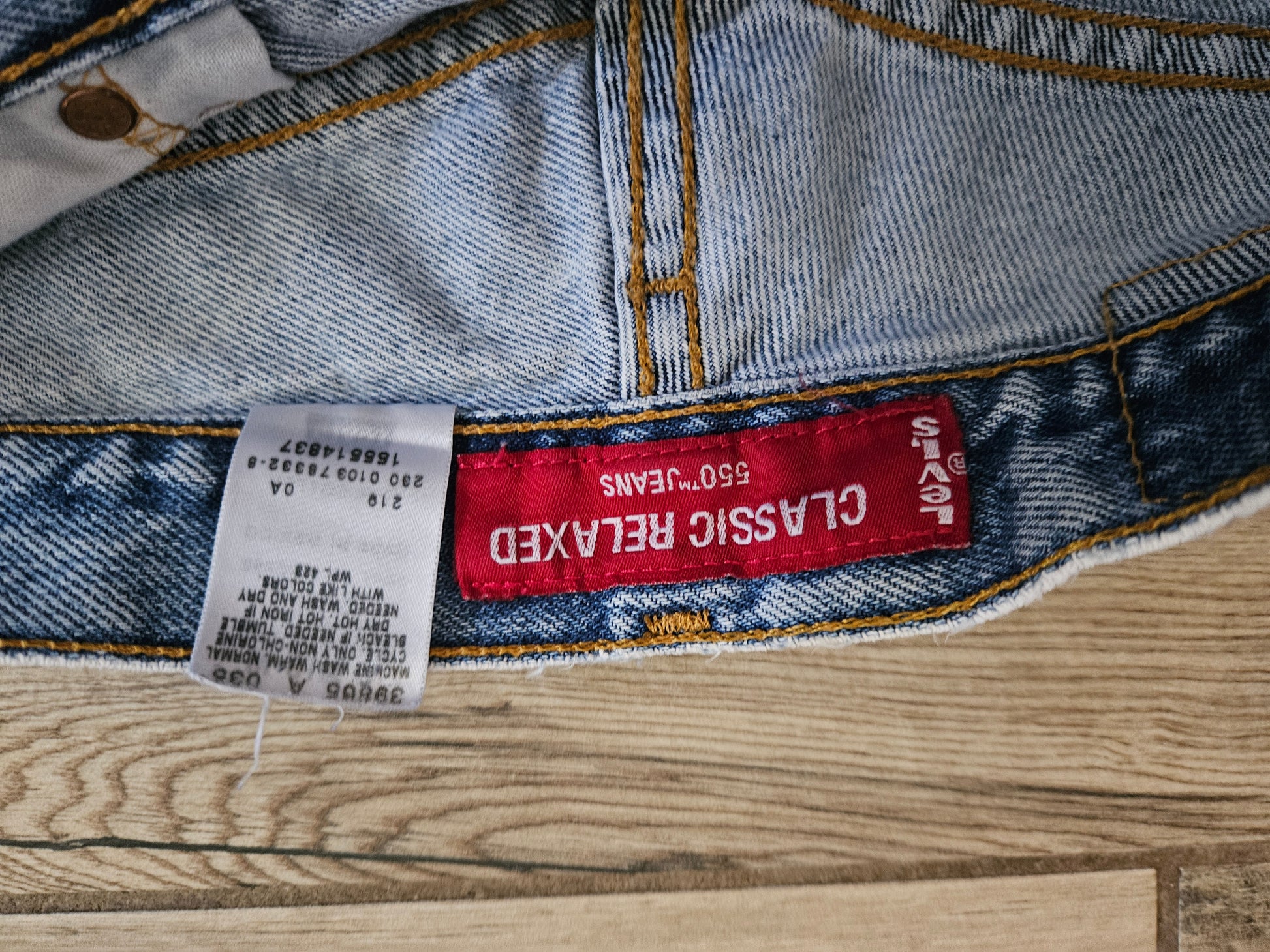Authentic vintage 1990s Levi’s 550 Classic Relaxed jeans featuring a comfortable high rise and a relaxed fit through the hips with a gently tapered leg. Crafted from sturdy cotton denim in a classic light wash, these jeans offer timeless style with true vintage character.