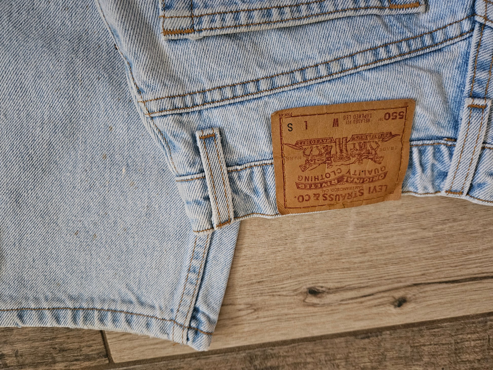Authentic vintage Levi’s 550 Relaxed Fit jeans featuring a comfortable mid rise, relaxed fit through the hips, and a classic tapered leg. Crafted from sturdy 100% cotton denim in a light wash, these jeans deliver timeless everyday style with genuine vintage character.