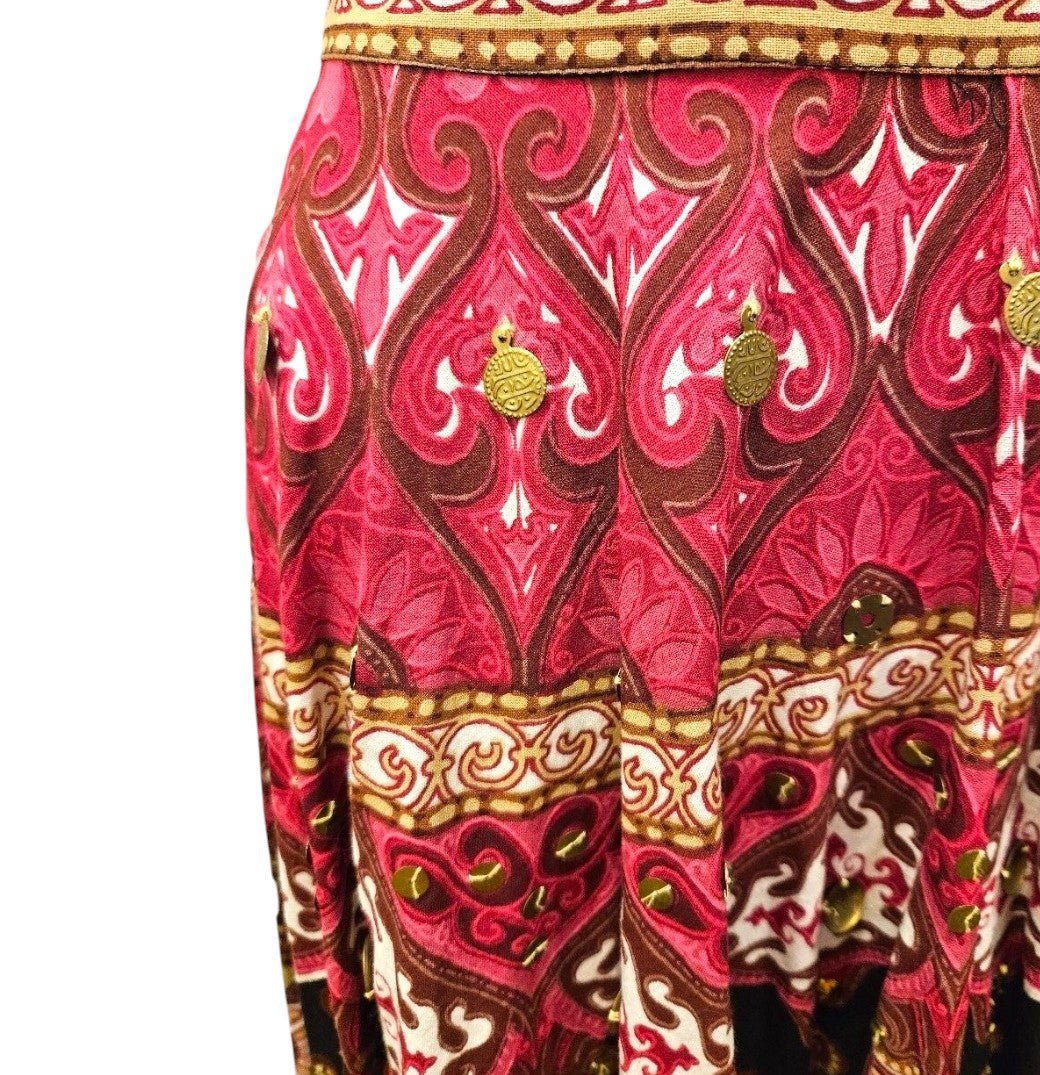 Sue Wong Vintage Halter Dress – Red Gold Ornamental Print, Boho Glam Y2K Cocktail Dress